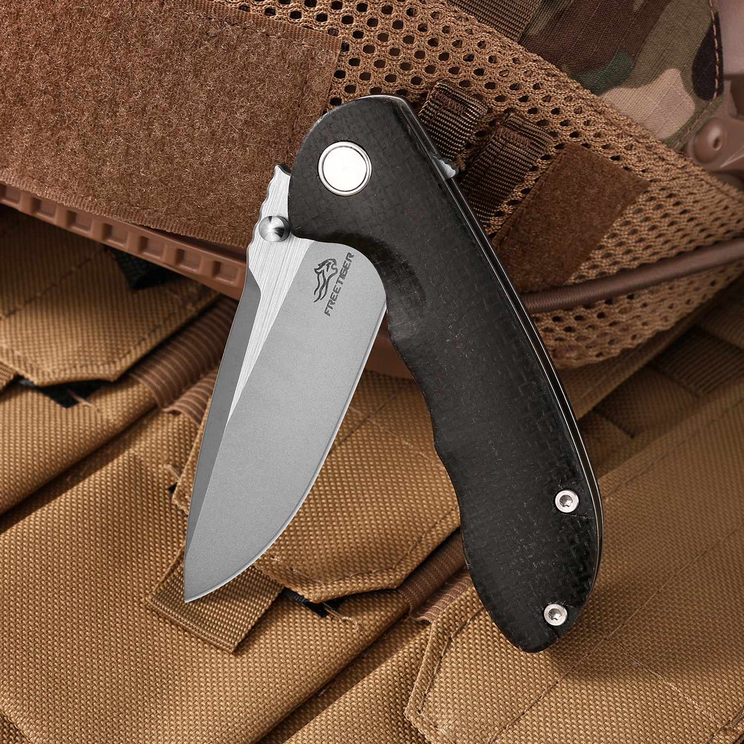 Model pro vaši bezpečnost v přírodě i v extrémních podmínkách. Je zaručena vysoká ostrost brusu této čepele. Velmi pevný a bezpečný úchop nože i v rukavicích. Jedná se o produkt vysoké kvality dílenského zpracování a použitých materiálů. Tento outdoorový nůž značky FREETIGER má čepel vyrobenou z nožířské oceli 14C28N (Sandvik) a proto je vysoce odolný proti korozi. Rukojeť je vyrobena z materiálu G10 používaného většinou pro armádní výrobky. Více informací o použitém materiálu najdete v této sekci “Použité materiály“.